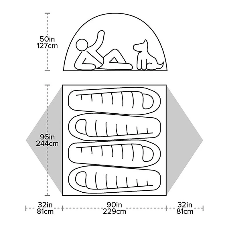 - Innenzelt und (mit optionalem Footprint) Außenzelt können separat aufgebaut werden