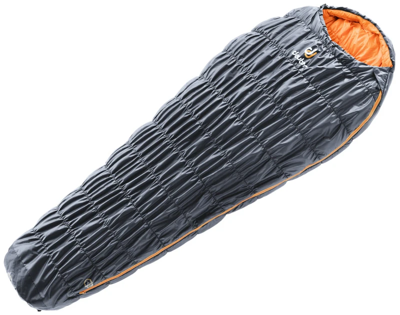 Thermo Stretch Comfort heißt die besondere Deuter Konstruktion, mit der sich die Highend Kunstfaser-Modelle um 25 % in der Breite dehnen lassen. Dank der elastischen Kammernähte, auf ganzer Schlafsacklänge innen und außen, kann sich der Schlafende in ihnen drehen und wenden, wie er will – ohne dabei aufzuwachen. Und das geschieht oft: Bis zu 60 Mal wechselt man während der Nacht seine Schlafposition. Zugleich schmiegt sich der Schlafsack durch diese Konstruktion dicht am Körper an und wird rasch warm, da der Schläfer deutlich weniger Luft erwärmen muss.