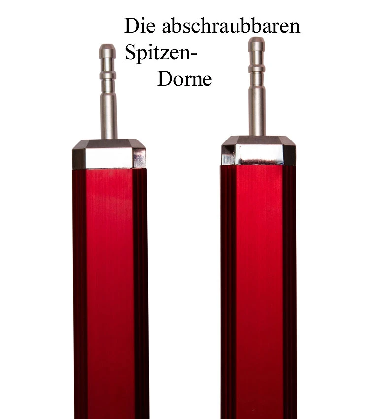 - Der Spitzendorn kann in Ösen eingesteckt werden, ein Gummiabdeckkopf ist im Lieferumfang