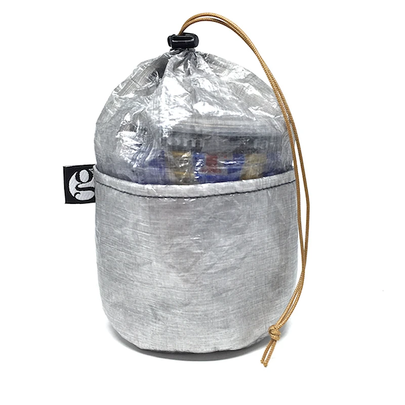 Ein ultraleichtes pot cozy, das gleichzeitig auch als Packsack genutzt werden kann, aus Cuben Fiber.