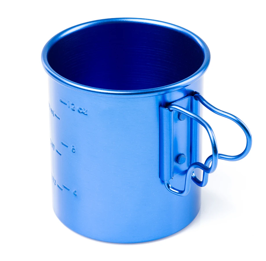 Eine unglaublich leichte, trotzdem sehr stabile Tasse aus eloxiertem Aluminium.