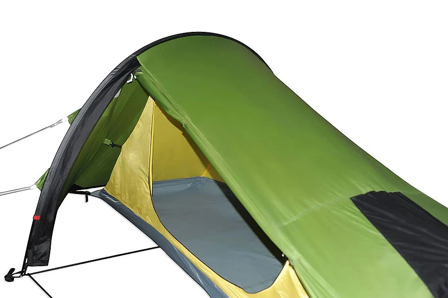 Ein solides, 1.7 kg leichtes 1-Personenzelt in klassischer Doppeldach-Bauweise. Sehr schnell aufgebaut durch im Aussenzelt hängendes Innenzelt und 1-Bogen-Alu-Gestänge. Sehr robust durch (für diesen Preis) hervorragende Materialien. Reichlich Platz für Gepäck, im Innenzelt wie auch in der Apsis vor dem Eingang. Kleines Packmaß durch kurze Gestängesegmente.