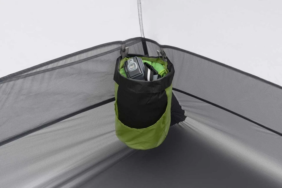 - Die Zeltpacksäcke können als Zusatznutzen im Innenzelt mittels Druckknopf als Kleinkram-Taschen fixiert werden