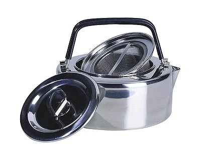Dieser Edelstahlkessel mit einem feinmaschigen Teesieb (ebenfalls Edelstahl) ist für unterwegs oder zu Hause gleichermaßen geeignet.Die isolierten Griffe an Kessel und Deckel lassen sich für den platzsparenden Transport anklappen.