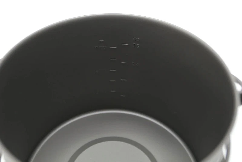 Ein relativ großer Topf aus Titanium, ausreichend im Volumen für 1 luxuriösen UL-Trekker oder 2 genügsamere. Volumen max 1350 ml. Mit Deckel. Faltgriffen und Henkel – kann auch über Feuer genutzt werden.